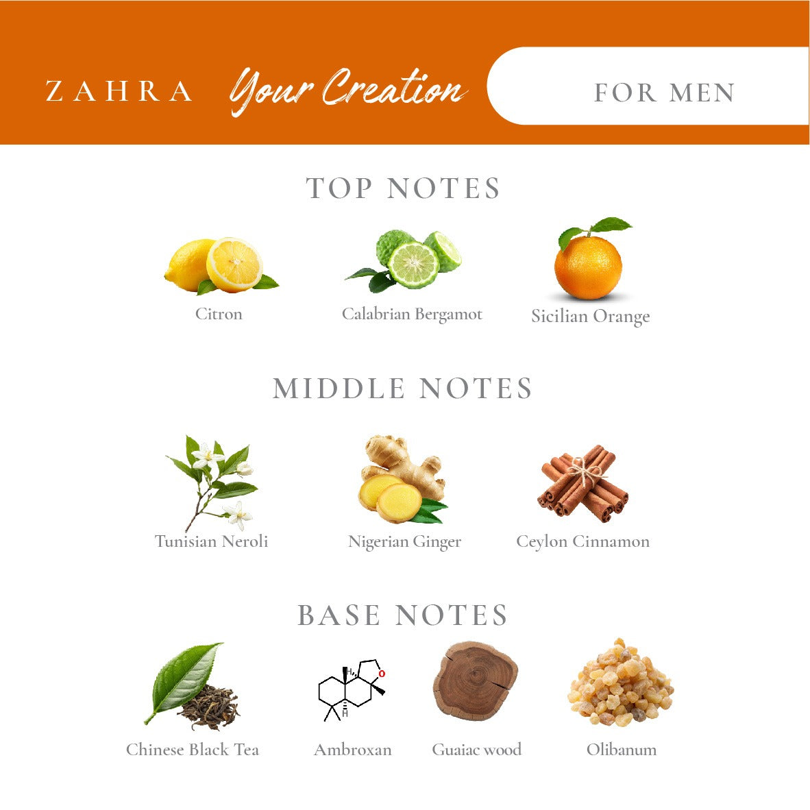 Your Creation balances vibrant freshness with smoky depth and soft florals — delivering a clean yet powerful aura that’s both uplifting and unforgettable.